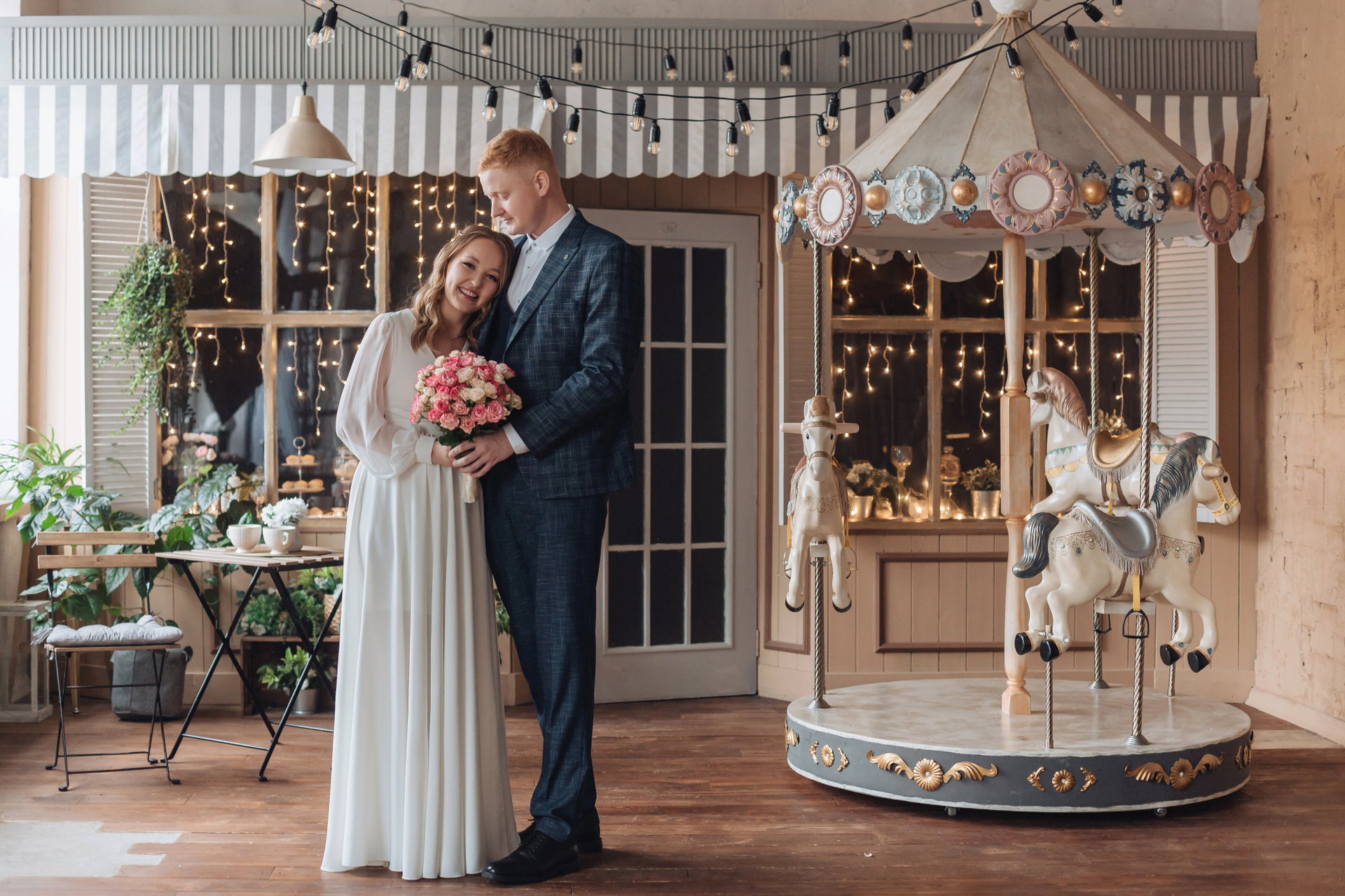 — Свадебная фотосессия в студии после регистрации в ЗАГС, продолжительность съёмки — 1 час